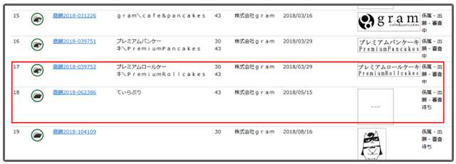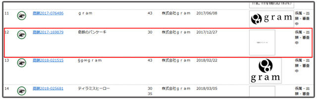 なお、「株式会社gram」が申請中の他の商標のなかには「奇跡のパンケーキ」「プレミアムロールケーキ」「てぃらぷり」なども。