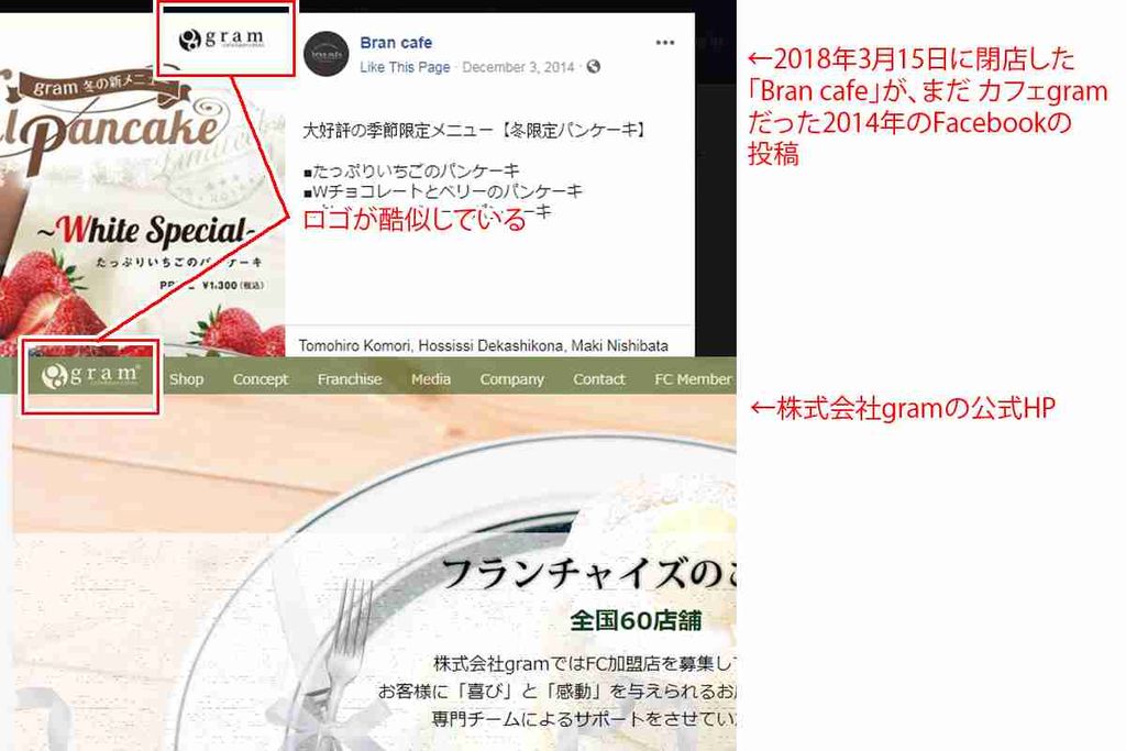かつて大阪心斎橋にあった「カフェgram」(その後「Bran cafe」に改名、2018年3月15日に閉店)の店名・ロゴを乗っ取ったのでは?という疑惑が浮上しています…。